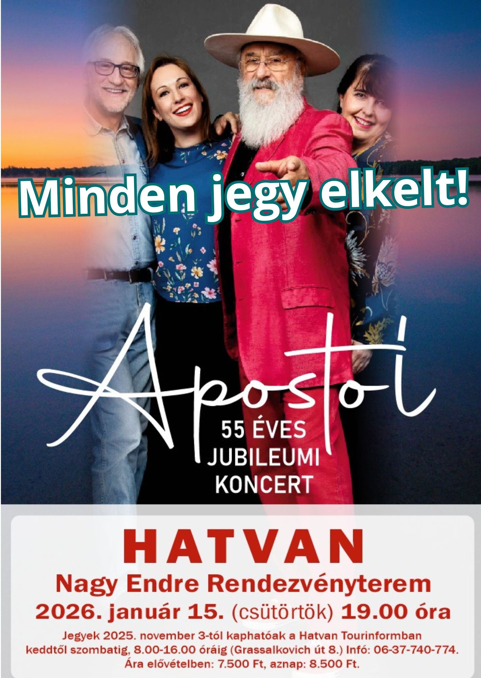 Apostol - 55 éves jubileumi koncert Az Apostol 55 éves jubileumi koncertjére MINDEN JEGY ELKELT! A helyszínen jegyvásárlásra már nincs lehetőség!