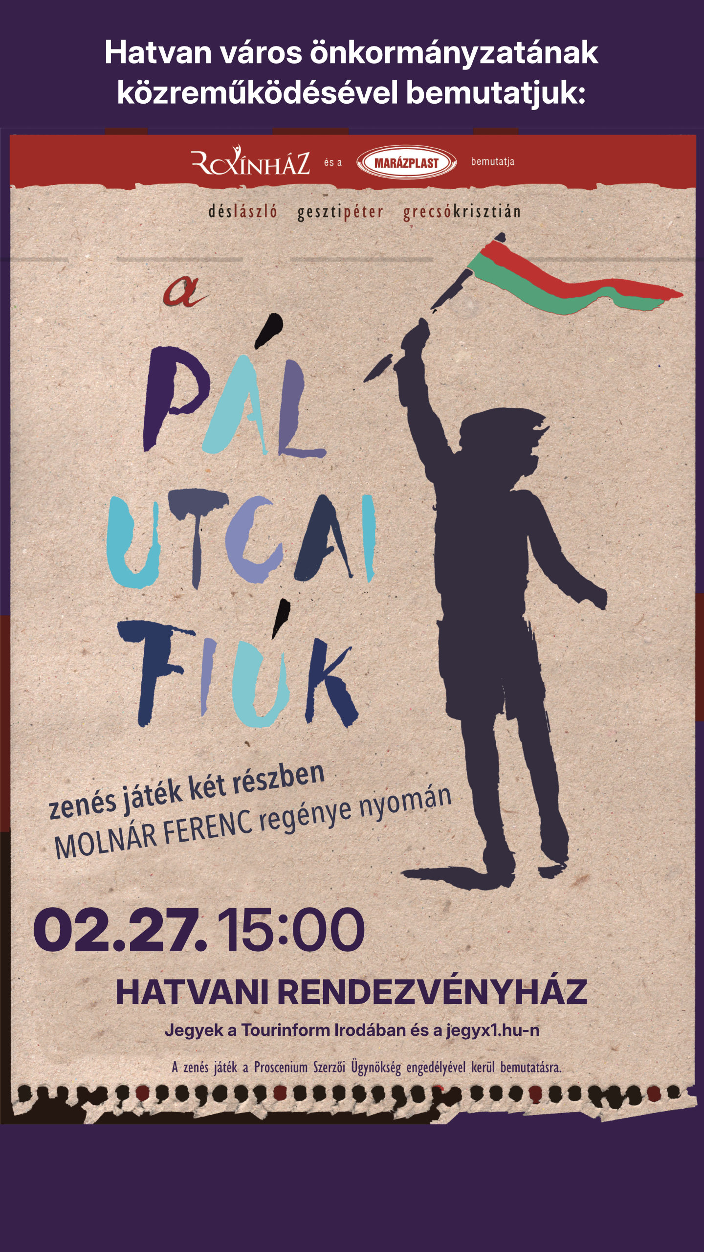 A Pál utcai fiúk zenés játék 2 részben - Rockszínház előadásában 2026. február 27. 15.00 Hatvan, Hatvani Rendezvényház, Nagy Endre Rendezvényterem